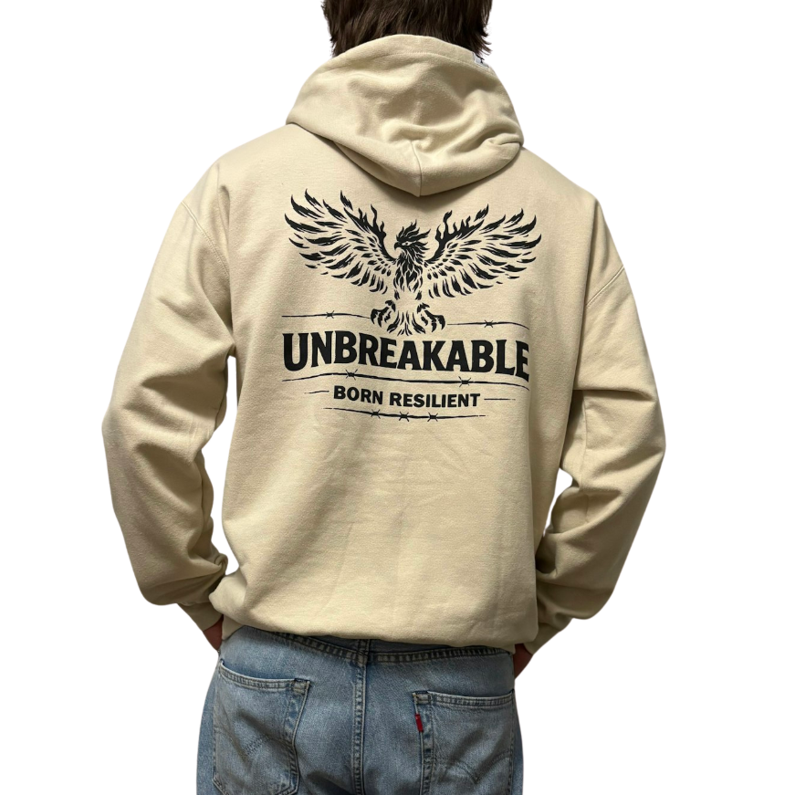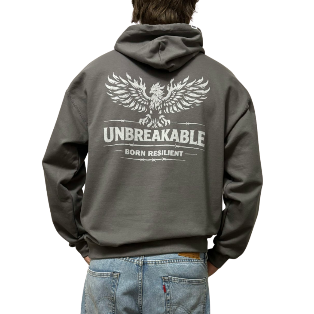 This comfortable unisex hoodie features our powerful 'Unbreakable' logo.